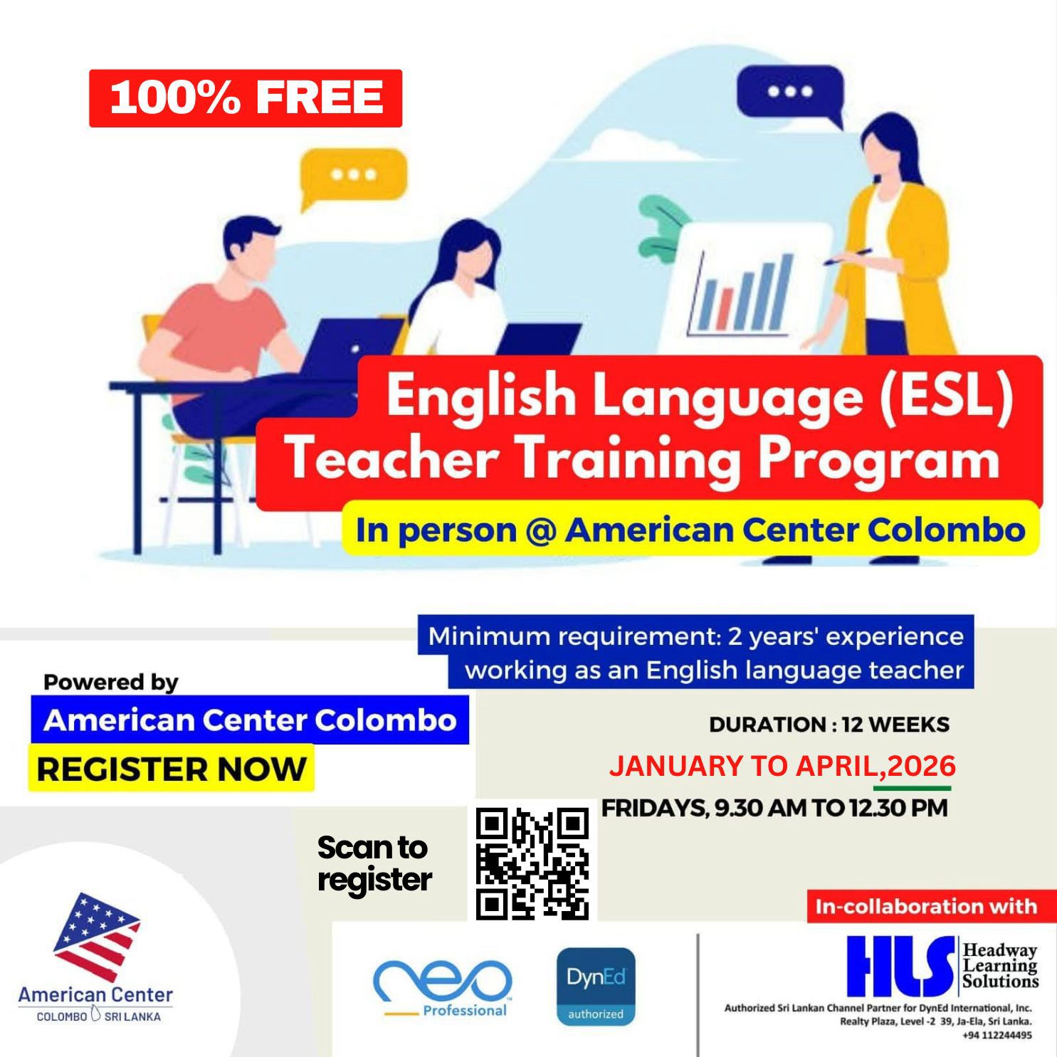 Can you attend classes at the American Center Colombo on Friday from 9:30 AM to 1:30 PM?